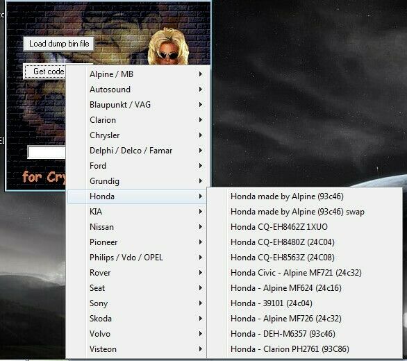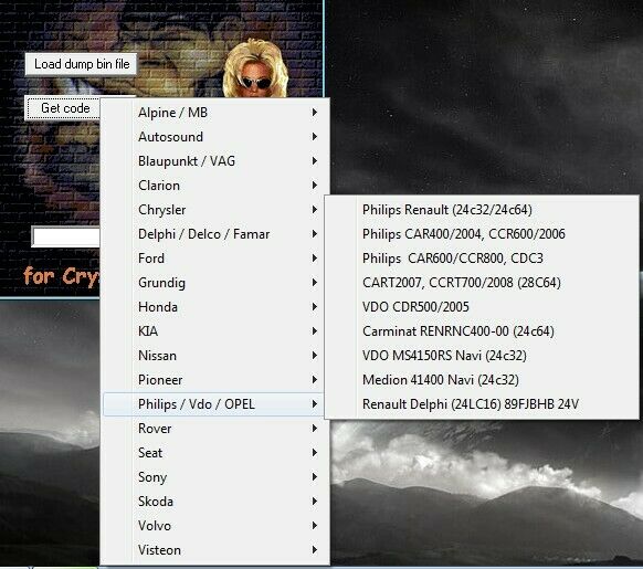 car radio read pin code by dump file
