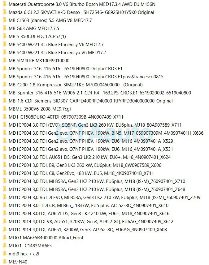 - Compatible with a wide range of ECUs including MD1, MG1, EDC17, and SIMOS 19, covering many vehicle makes and models.