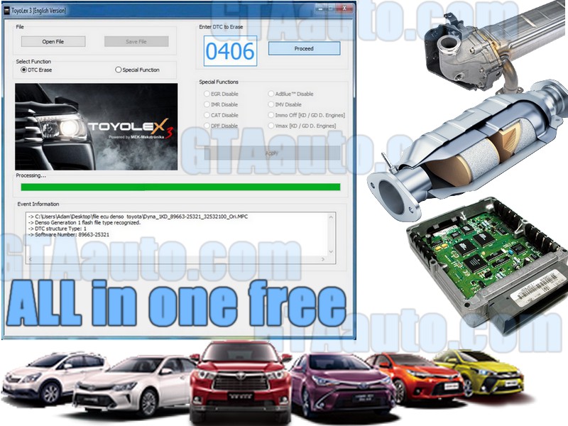 ToyoLex 3 DPF EGR IMMO OFF CAT DTC Unlimited software Denso Toyota Lexus