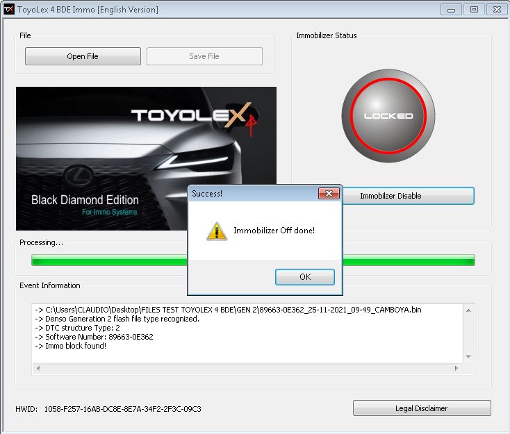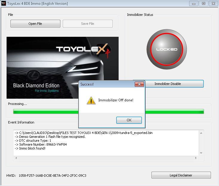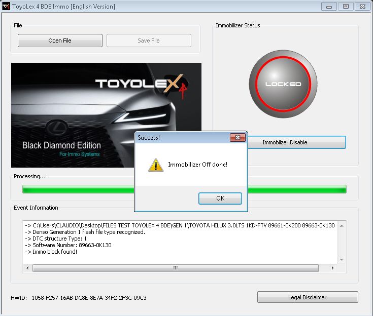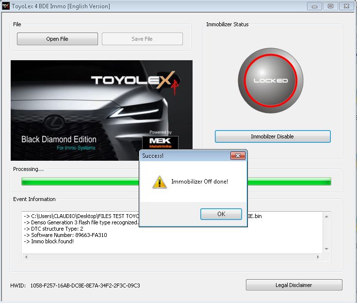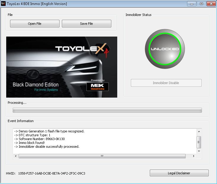 ToyoLex 4 Black Diamond Edition, the first application on the world designed exclusively for DISABLE IMMOBILIZER SYSTEM TROUGH FLASH FILE on Toyota, Lexus and Hino ( N04 engines). It has the following characteristics: